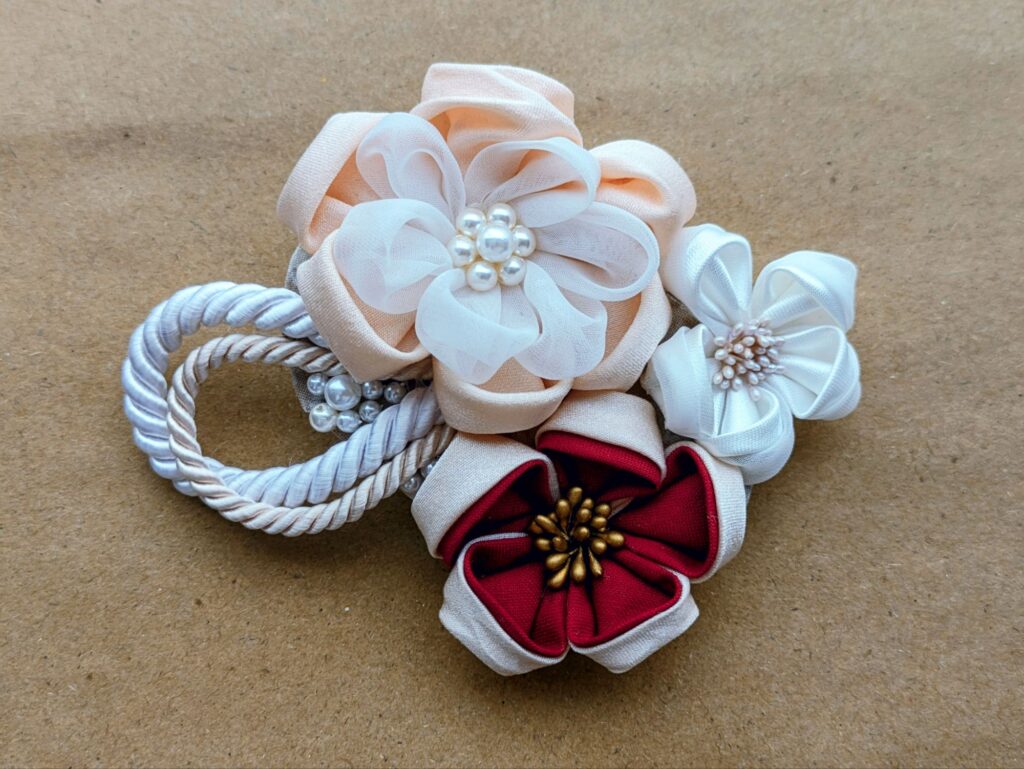 This was one of my earliest tsumami craft pieces, created simply to practice maru-tsumami.